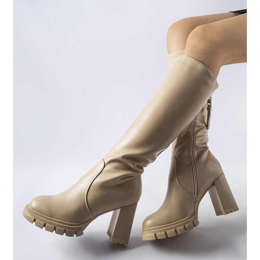 Inna marka Beige warme lange Stiefel mit hohen Absätzen
