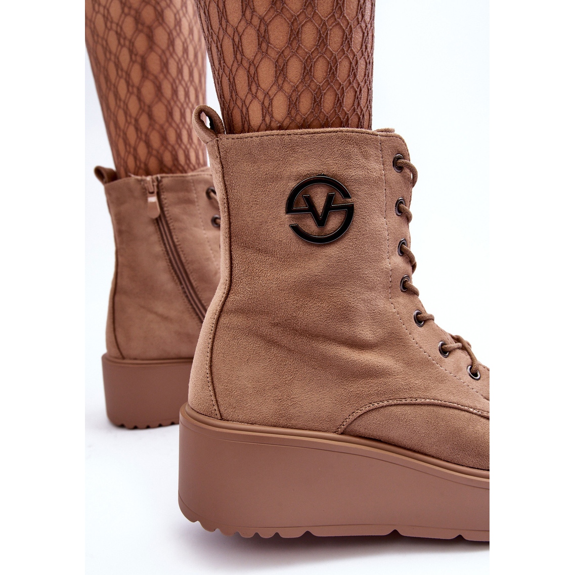 Details: Vinceza Beige Wildleder-Worker-Stiefeletten mit massivem Plateau-Wedge Beige Lavica