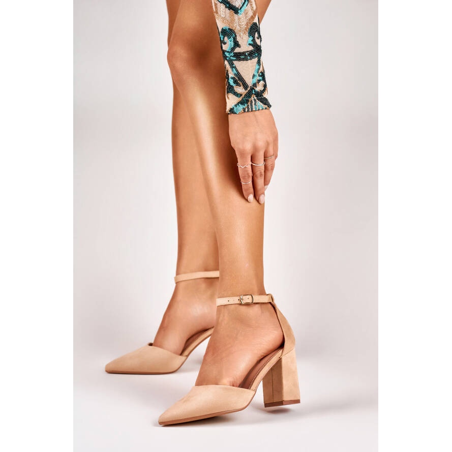 Details: Beige Wildlederpumps mit Knöchelverschluss QA203BE