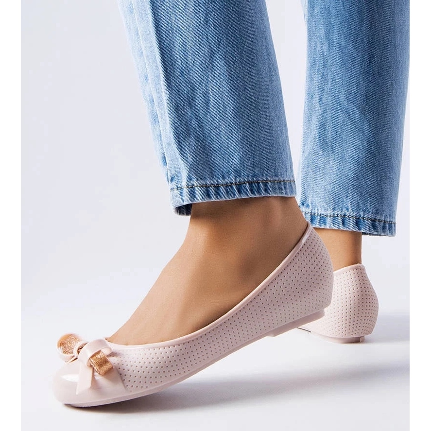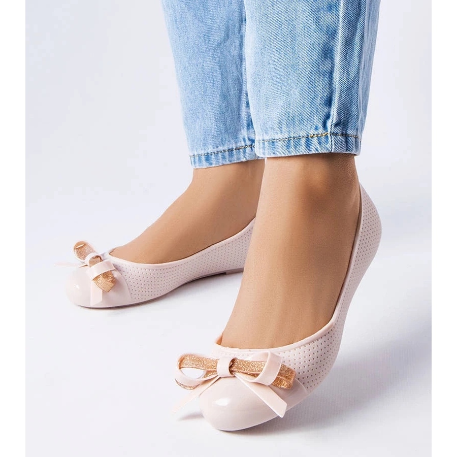 D/GMR D/GMR Beigefarbene Ballerinas, verziert mit einer Harlingen-Schleife