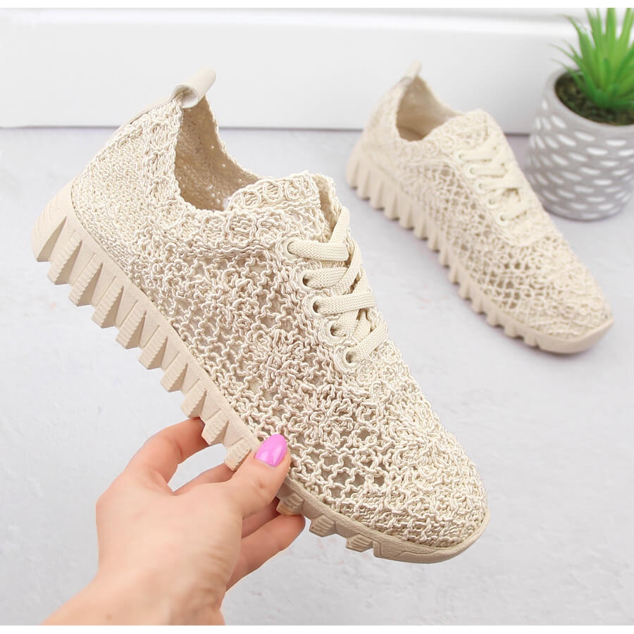 Details: Beigefarbene Damen-Sportschuhe aus Spitze von T.Sokolski 1982