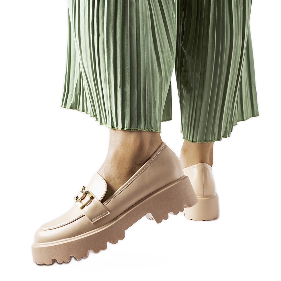 Details: Inna Beigefarbene Damenmokassins, verziert mit einer Piazzo-Schnalle