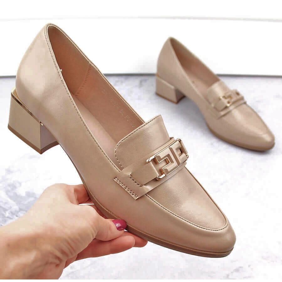 Details: Beigefarbene Damenschuhe mit niedrigem Absatz Vinceza 58274
