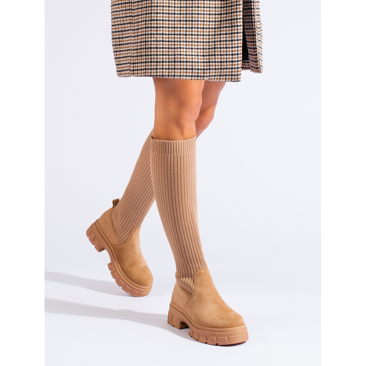 Frauenstiefel mit einem flexiblen Obermaterial - beige