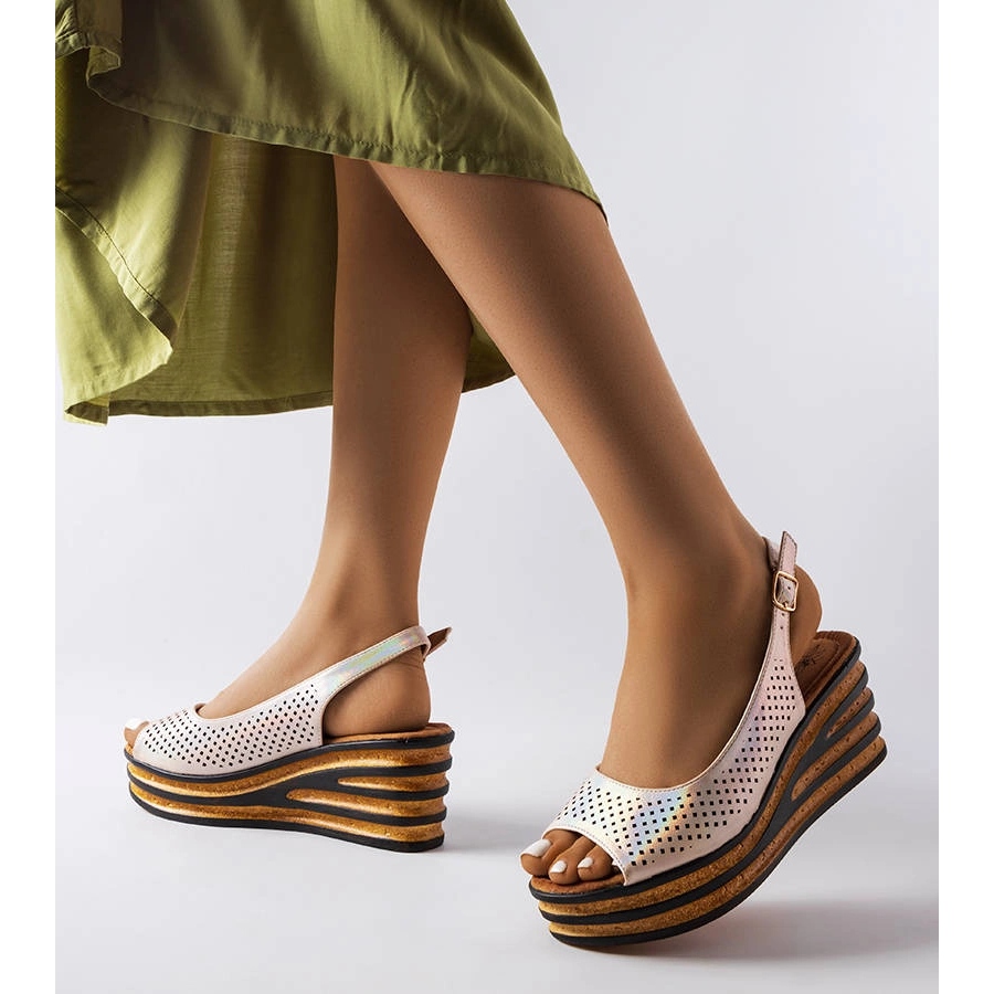 Beige Espadrilles auf dem Griner -Keil - stilvolle und komfortable Sandalen, die eine perfekte Ergänzung zu Sommerstilisationen darstellen. Das modell glänzende Sandalen auf dem GD-FL1041A-Keil kombiniert eine klassische Form mit einer subtilen Openwork-Dekoration, die Leichtigkeit und Frische verleiht.