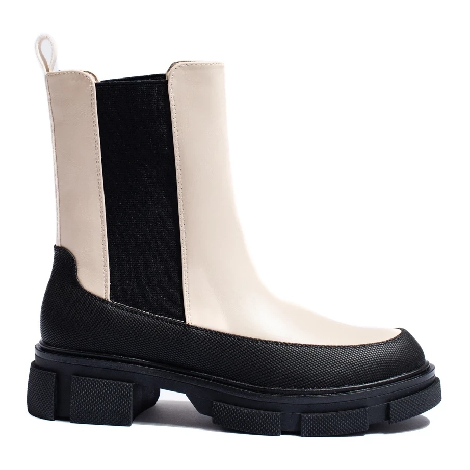 Stylische, komfortable Goodin Chelats in einer universellen beige und schwarzen Verbindung. Hergestellt aus ökologischem Leder, isoliertem Innenraum und einer Textileinholde gewährleisten den thermischen Komfort und die Bequemlichkeit der Verwendung in der Herbst -Winter -Wiosna -Jahreszeit. Ein Modell, das nach dem Knöchel greift, auf einem stabilen, niedrigen Keil ideal für den alltäglichen, lässigen Stil.
