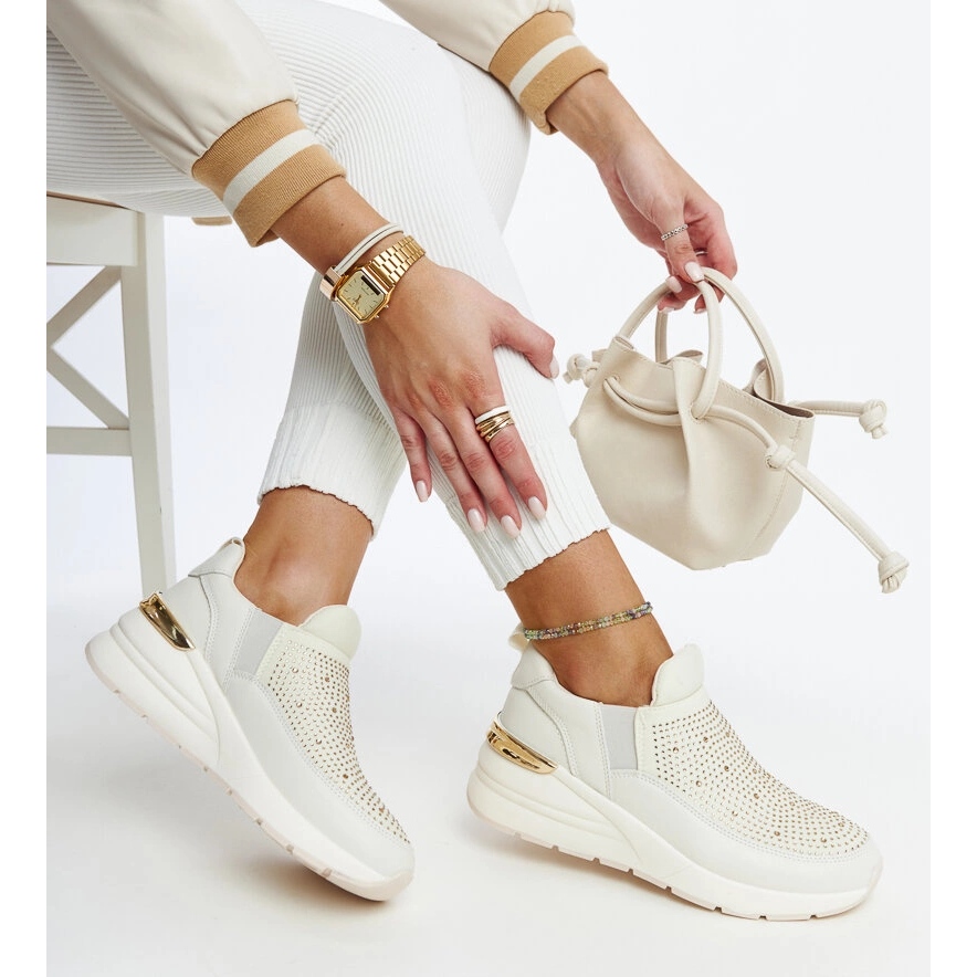 Beige Sneakers on Wedge With Zircone Ashleey ist die perfekte Wahl für Frauen, die Komfort mit Eleganz in ihren Sommerstilisationen kombinieren möchten. Diese leichten Schuhe aus hochwertigem ökologischem Leder sind sowohl für jeden Tag als auch für besondere Anlässe perfekt.