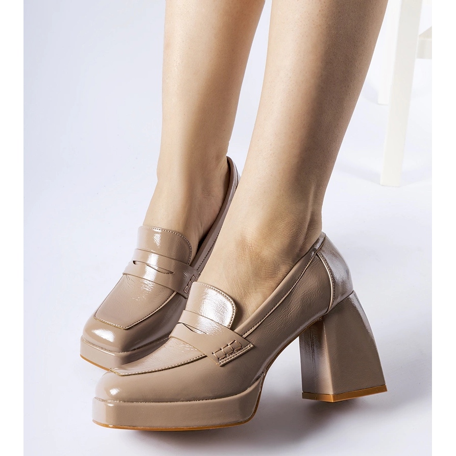 Die klassischen und modernen Westpumpen im Khaki/Beige -Schatten sind ein Vorschlag für Frauen, die Stil und Komfort schätzen. Hergestellt aus lackiertem ökologischem Leder, leicht und langlebig - perfekt für heiße Tage, an denen Sie sich um ein kostenloses und elegantes Aussehen interessieren. Die quadratische Nase ist Teil der neuesten Trends, und der stabile Pfosten (Ferse) sorgt den ganzen Tag von Komfort.