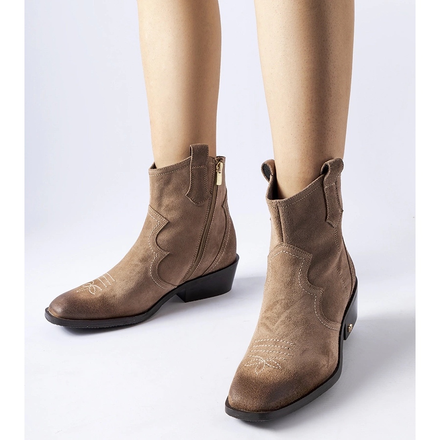 Inna marka Beigefarbene Lederstiefeletten mit niedrigem Absatz von Karino