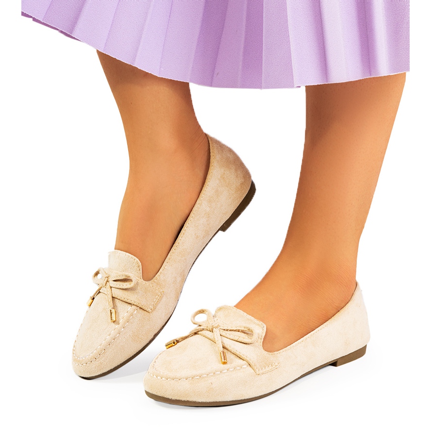Der wunderbare Nude-Ton passt sowohl zu eleganten als auch zu lässigen Outfits und verleiht ihnen einen dezenten Charme. Diese niedrigen Mokassins haben eine runde Spitze und eine stilvolle Schleife, die ihr einzigartiges Detail darstellt. Dank der einheitlichen Nummerierung (Größen 36-41) können Sie sie ganz einfach an Ihre Bedürfnisse anpassen.