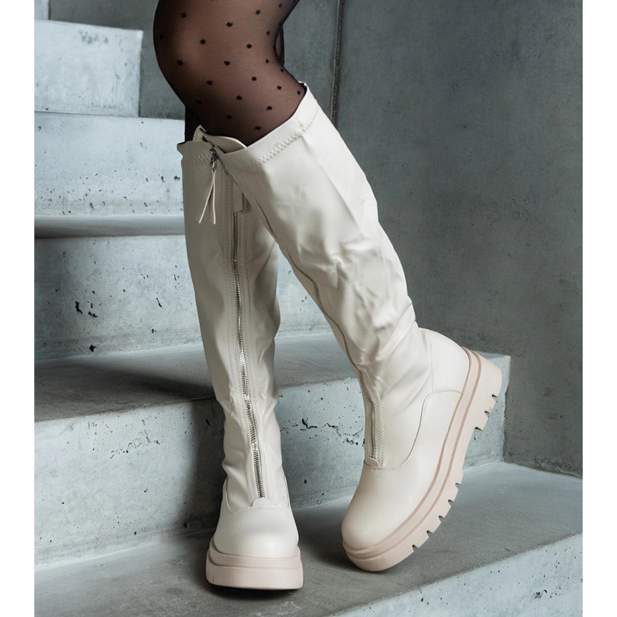 Wir präsentieren beige Flat -theeled Eco -Stiefel aus der Marke Other Mark - die perfekte Wahl für die Herbst/Frühlingssaison. Das F5972 -Modell kombiniert einen klassischen Schnitt mit einem modernen Stil, was es zu einem extrem universellen Element der Garderobe macht.
