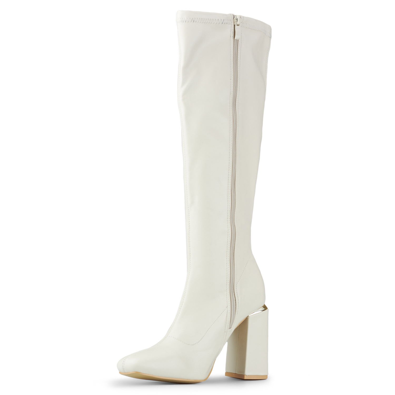 Details: Beigefarbene Öko-Lederstiefel mit hohen Absätzen