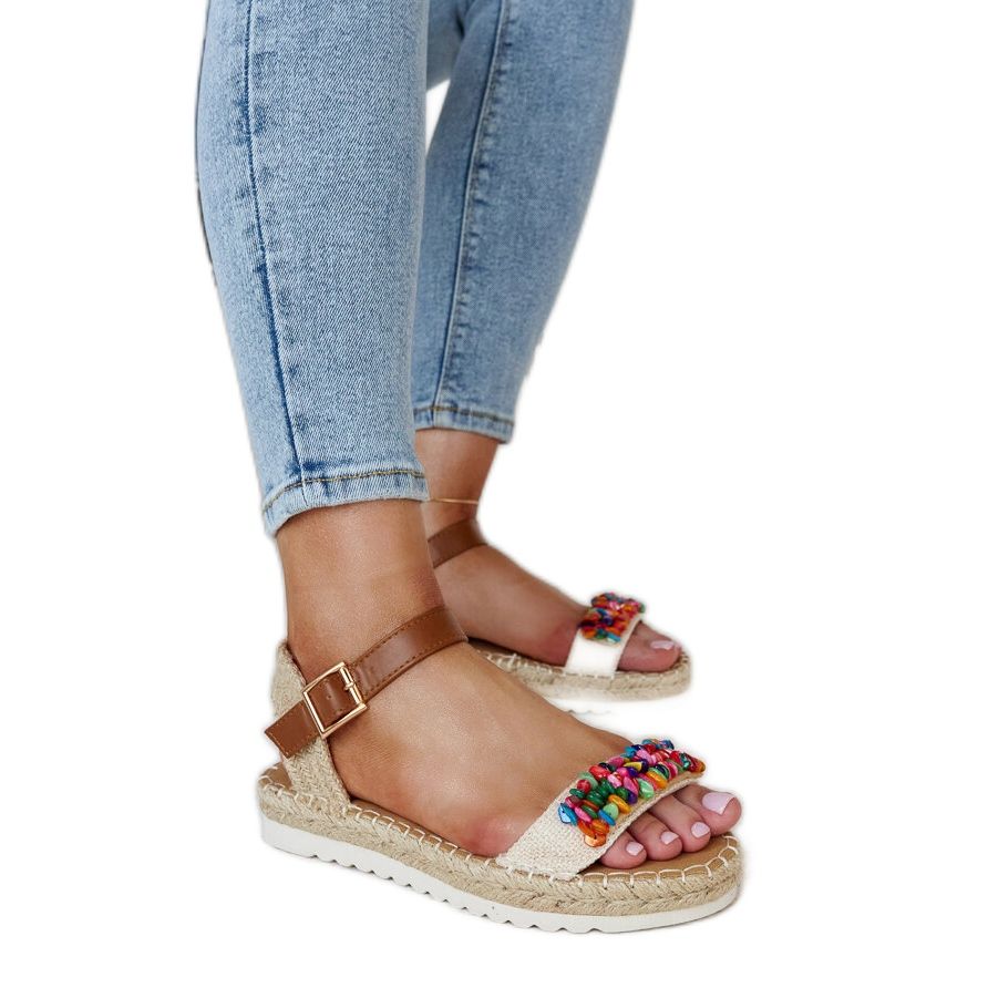 Inna marka Beigefarbene Sandalen mit bunten Galatine-Steinen