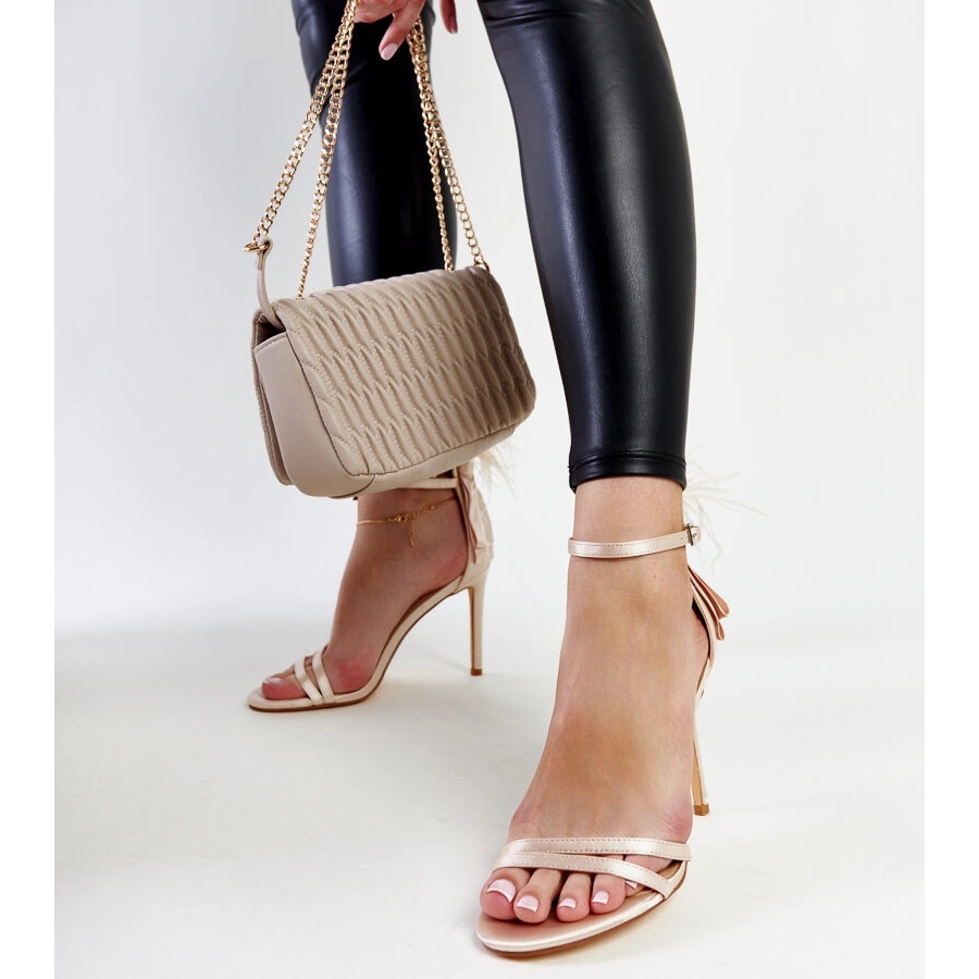 Inna marka Beigefarbene Sandalen mit Federn von Adalgisio