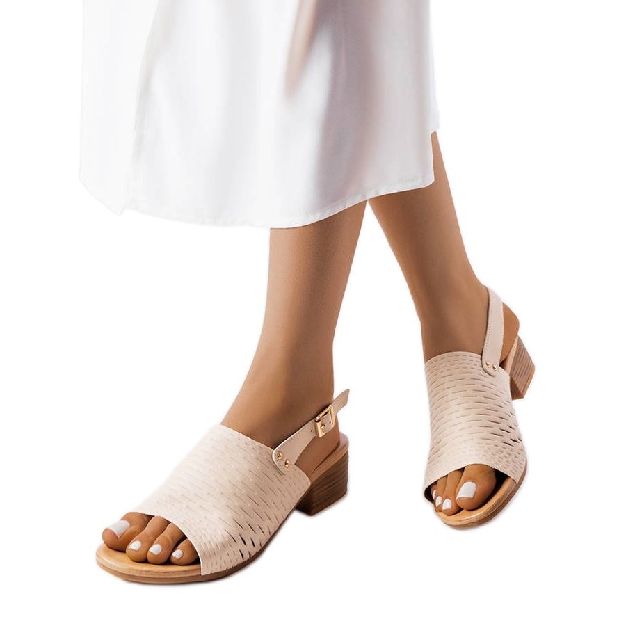 Inna marka Beigefarbene Sandalen mit niedrigem Absatz