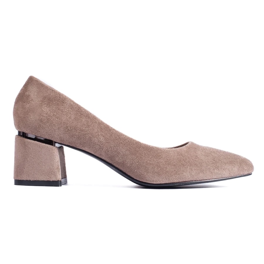 SHELOVET Beigefarbene Shelovet-Pumps aus Wildleder mit niedrigem Absatz