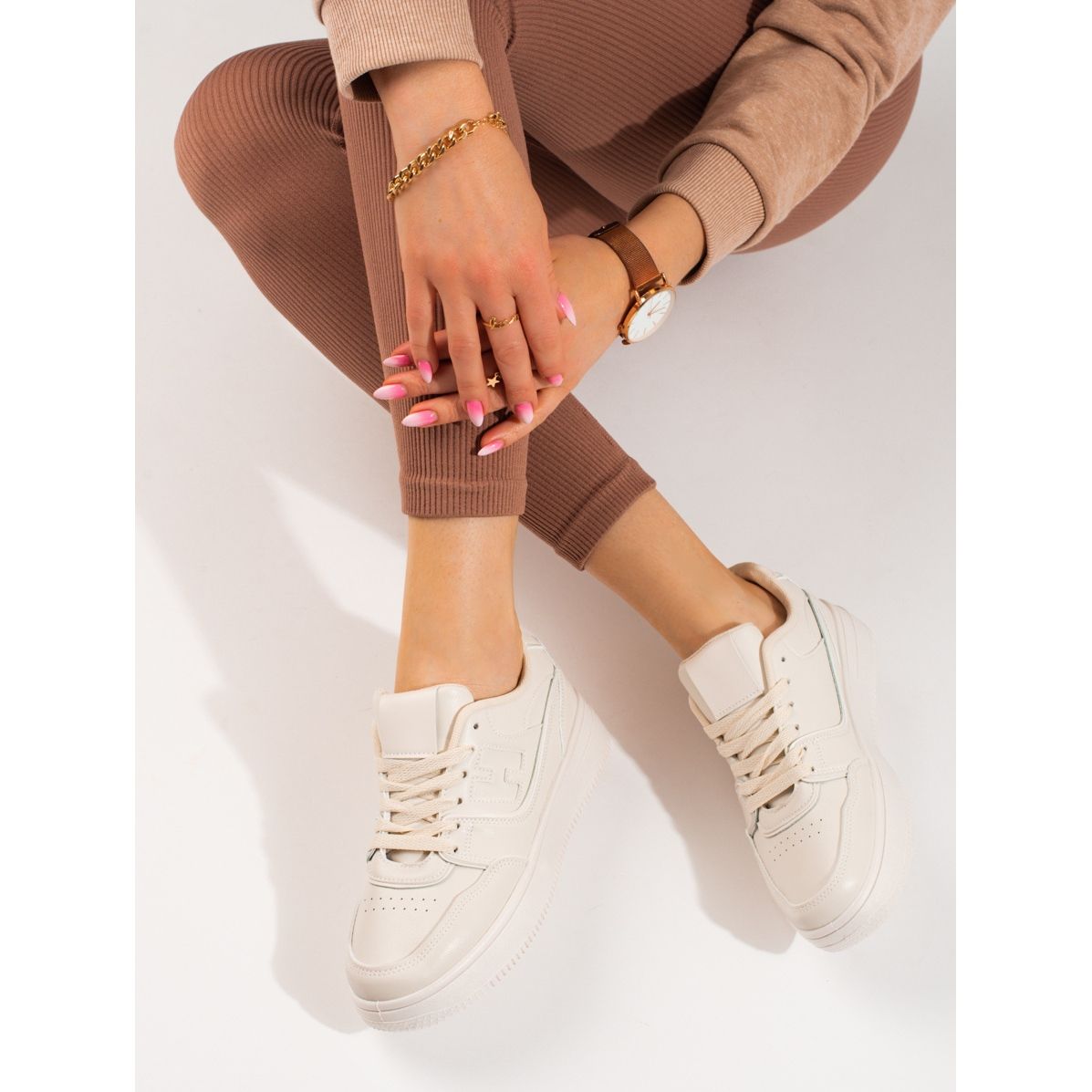 Beige Damen-Sneaker von Shelovet sind ein ideales Angebot für Frauen, die Wert auf modischen, sportlichen Stil und Alltagskomfort legen. Zu 100 % aus hochwertigen Materialien gefertigt, vereinen diese Schuhe Eleganz mit Funktionalität.
