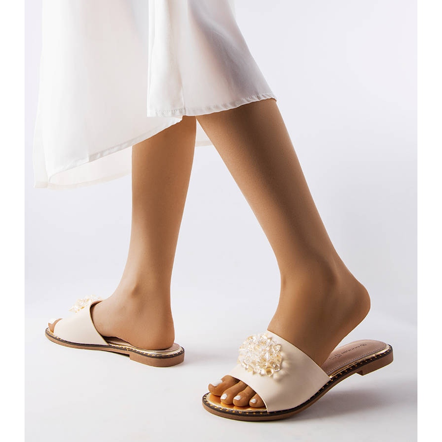 Inna marka Beigefarbene Slider mit Kristallen von Lowa