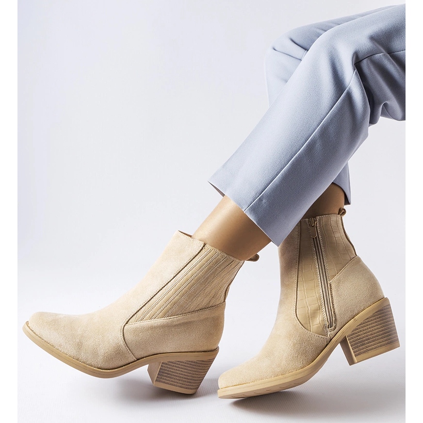 Details: Beigefarbene Stiefeletten aus Öko-Wildleder mit niedrigem Absatz von Sovere