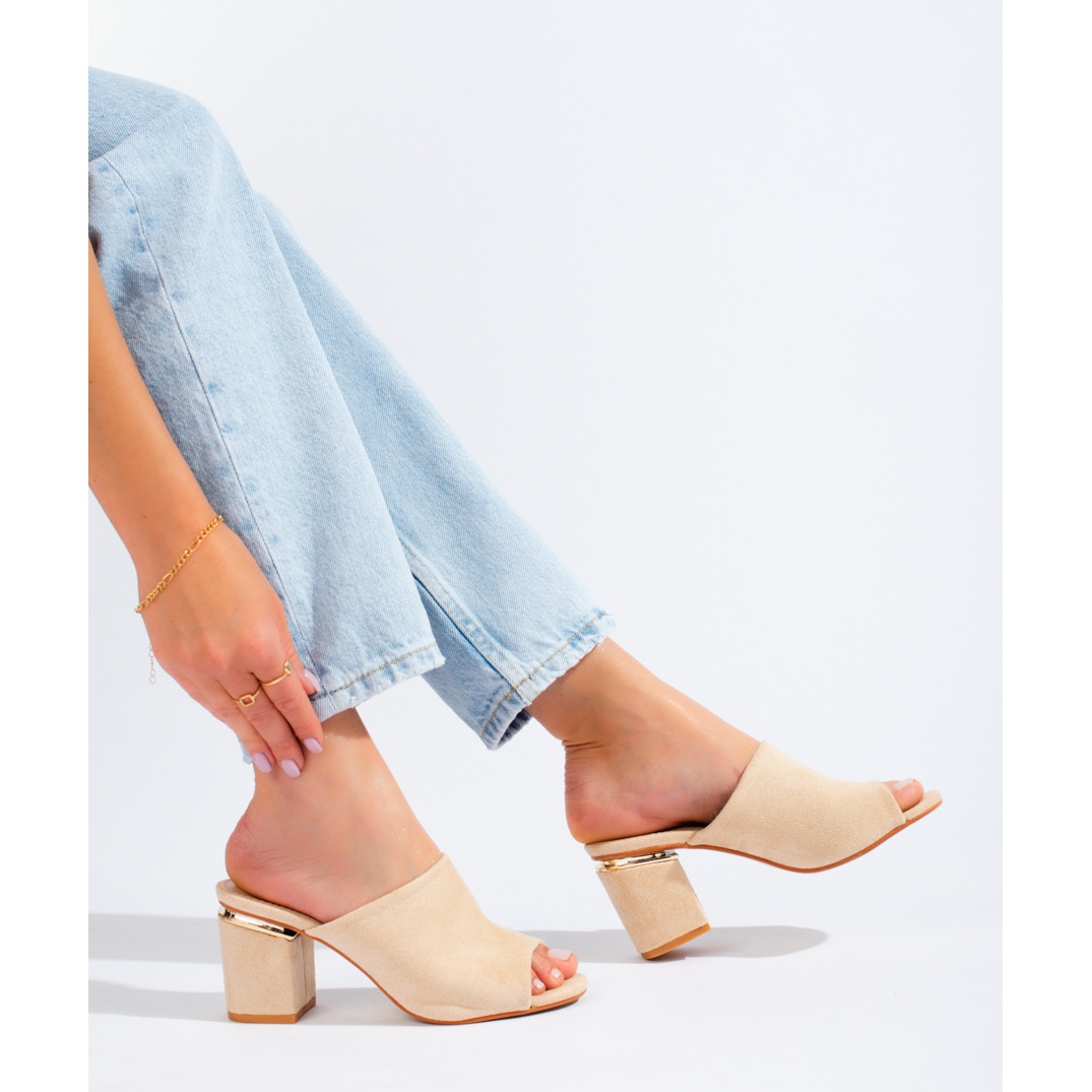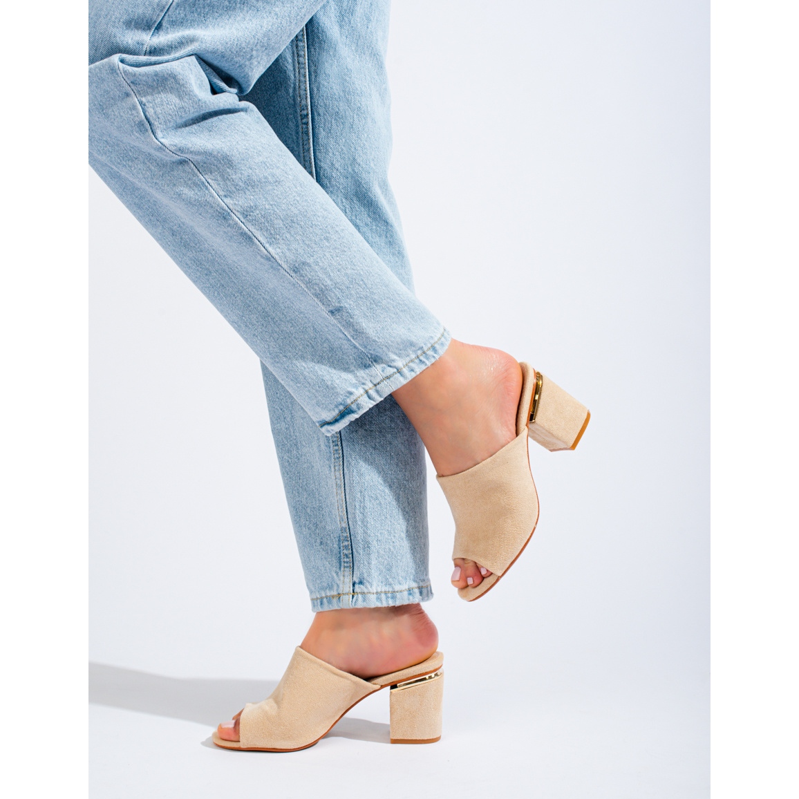 Vinceza Beigefarbene Vinceza-Pantoletten am Pfosten