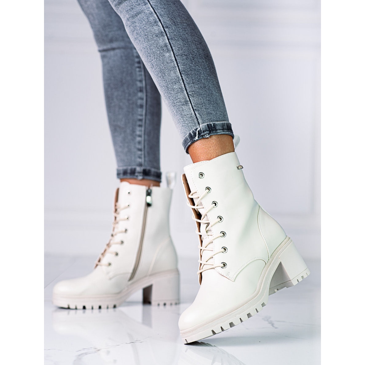 Dabei handelt es sich um beige Damen-Arbeitsschnürstiefel von Vinceza, die eine perfekte Wahl für die Herbst-/Wintersaison sind. Diese stilvollen Stiefeletten vereinen lässigen und rockigen Stil und eignen sich perfekt für alltägliche Ausflüge. Aus ökologischem Leder mit strukturierter Oberfläche gefertigt, sehen sie äußerst elegant aus und lassen sich durch ihren zeitlosen Beigeton problemlos mit vielen Stilen kombinieren.
