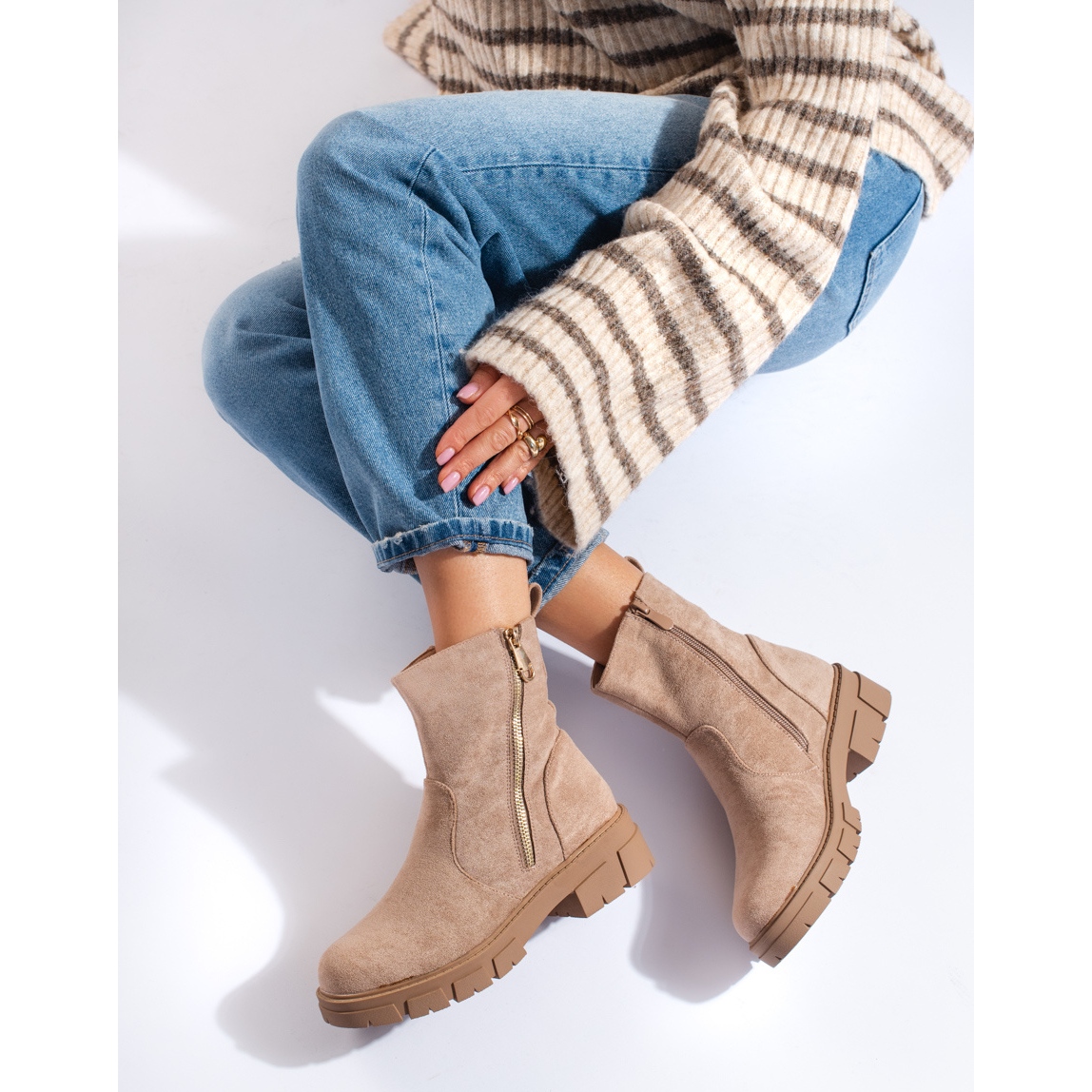 Details: Beigefarbene Wildleder-Stiefeletten mit dekorativem Reißverschluss von Vinceza
