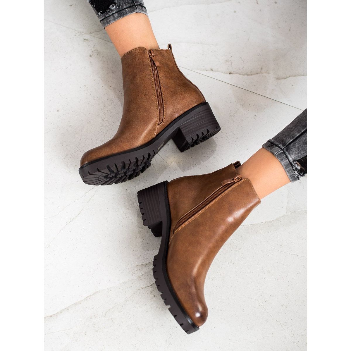 Bequeme braune Stiefel zeichnen sich durch einen stabilen Blockabsatz mit einer Höhe von 5 cm aus, der für Komfort bei längerem Tragen sorgt. Darüber hinaus gewährleistet eine solide, synthetische Sohle mit Profil eine gute Bodenhaftung, was besonders im Herbst und Winter wichtig ist.