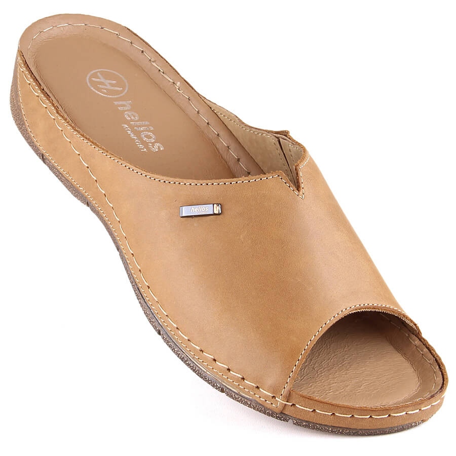 Helios Bequeme Damen-Lederhausschuhe mit Gummizug hellbraun Helios 105 beige