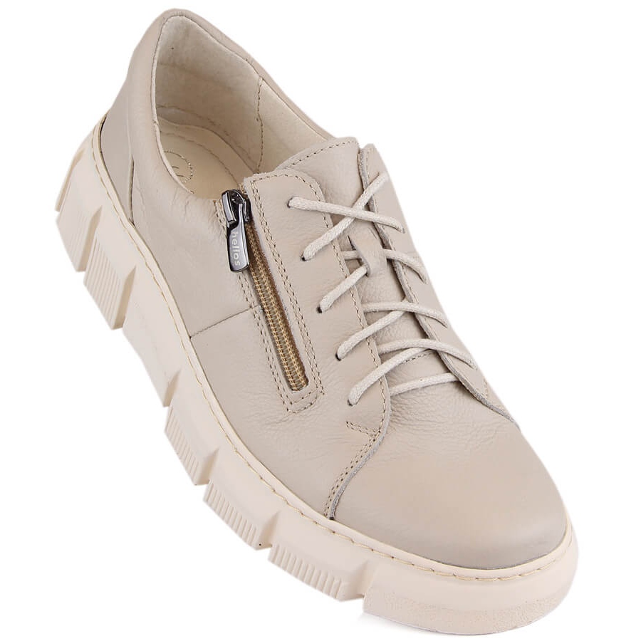Details: Bequeme Damen-Lederschuhe auf der Ecru-Plattform Helios 413.10 beige