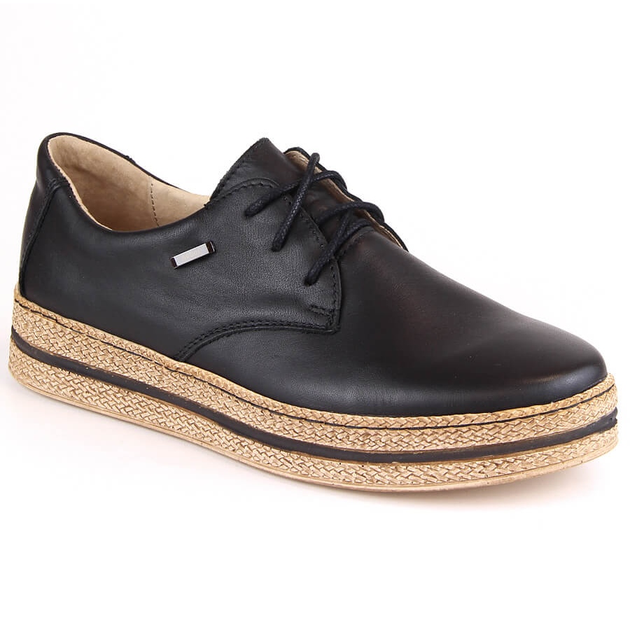 Bequeme Damen-Leder-Plateauschuhe, schwarz Helios 380.011 beige, sind die perfekte Wahl für jede Frau, die Wert auf die Kombination von Komfort und Eleganz legt. Helios-Schuhe, eine renommierte Marke, die für die Herstellung hochwertiger Schuhe bekannt ist, sind eine ideale Lösung sowohl für alltägliche Ausflüge als auch für weniger formelle Anlässe.