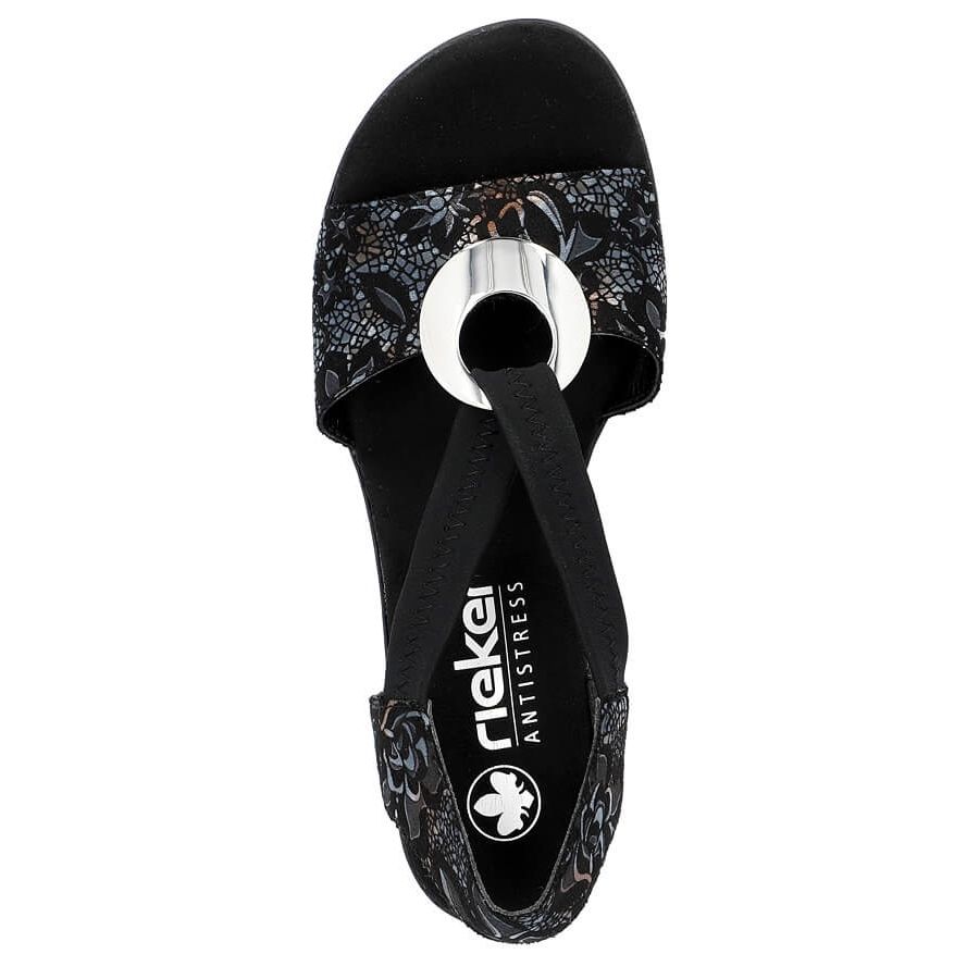 Details: Bequeme Damen-Sandalen mit hohem Absatz und Gummiband, schwarz Rieker 64683-91