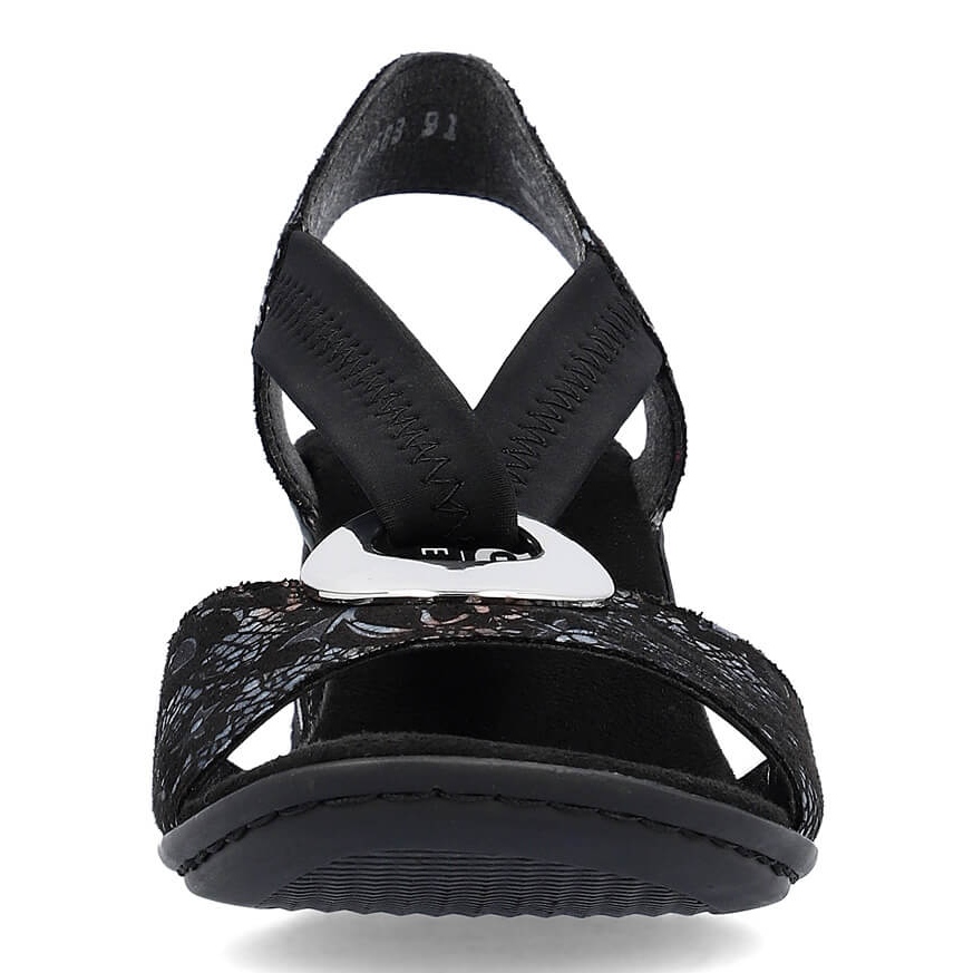Rieker Bequeme Damen-Sandalen mit hohem Absatz und Gummiband, schwarz Rieker 64683-91