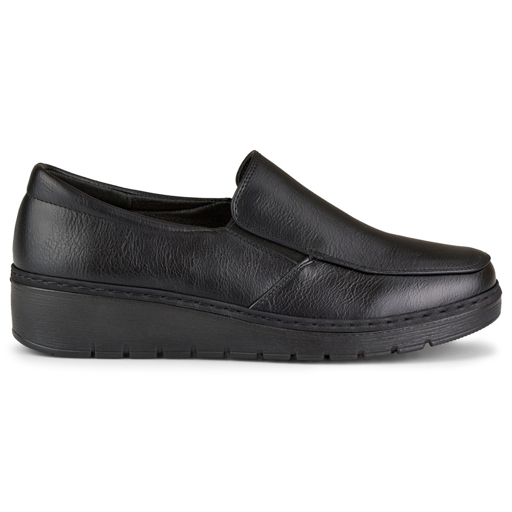 Details: Bequeme Damenmokassins aus schwarzem Öko-Leder