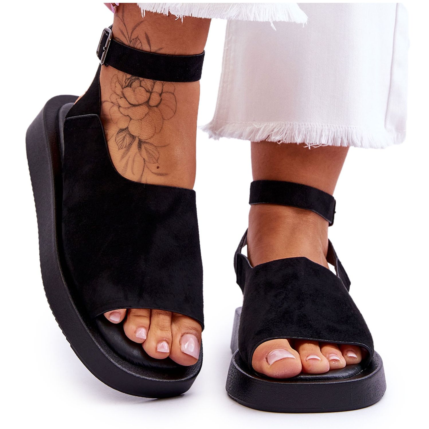 - Schnitt: Klassische, universelle schwarze Sandalen