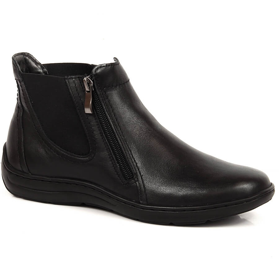 Details: Bequeme Damenstiefel aus Leder mit isolierten Łukbut-Reißverschlüssen schwarz