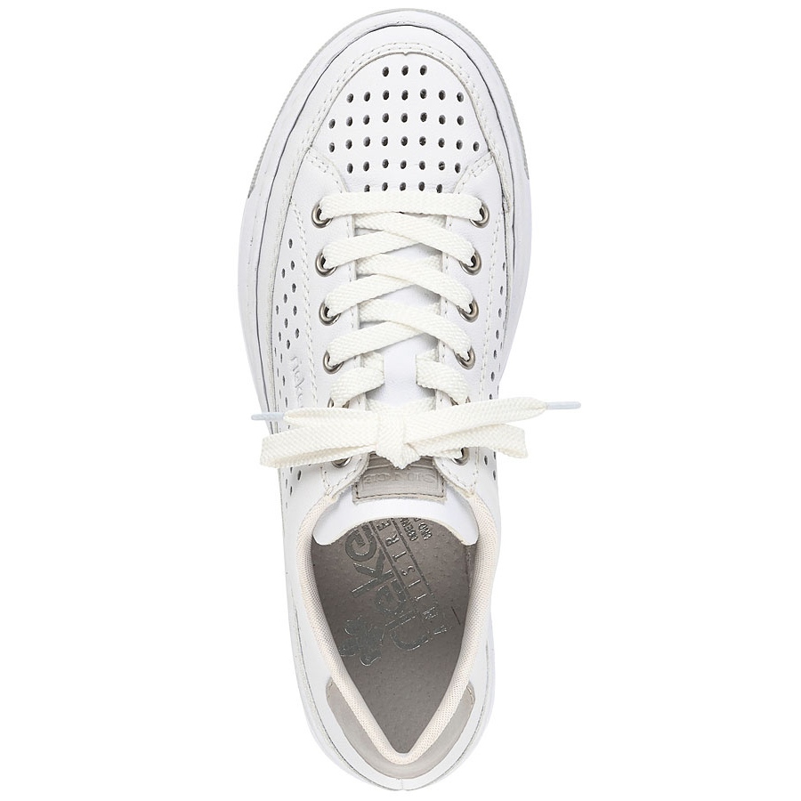 Details: Bequeme durchbrochene Damen-Sportschuhe aus Leder, weiß, Rieker L8849-80