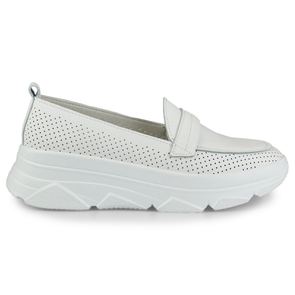 Bequeme Openwork -Frauenschuhe - weißes, natürliches Leder