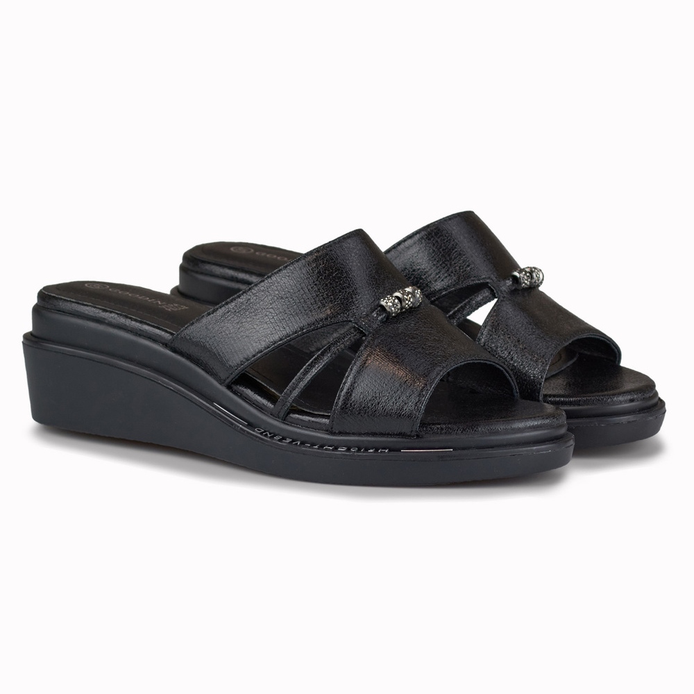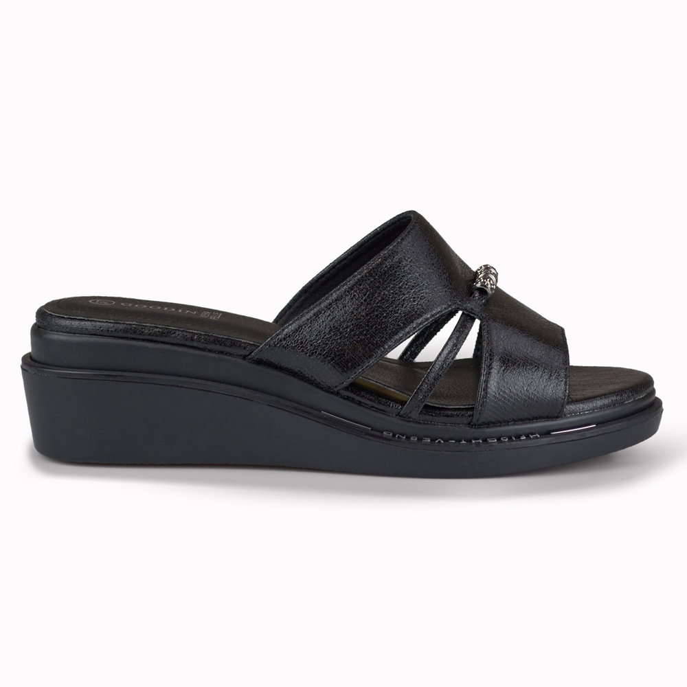 Details: Bequeme, elegante Damen-Slipper mit Keilabsatz schwarz