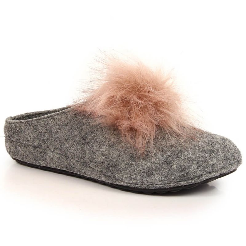 Delikate, stilvolle und extrem bequeme Frauenschuhe Panto Fino INT1767B, hergestellt aus weichem Filz, was den Komfort des ganzen Tages gewährleistet. Das subtile Pompom verleiht ihnen Charme, und die neutrale graue Farbe mit beige Akzenten macht sie zu vielen Heimstilen.