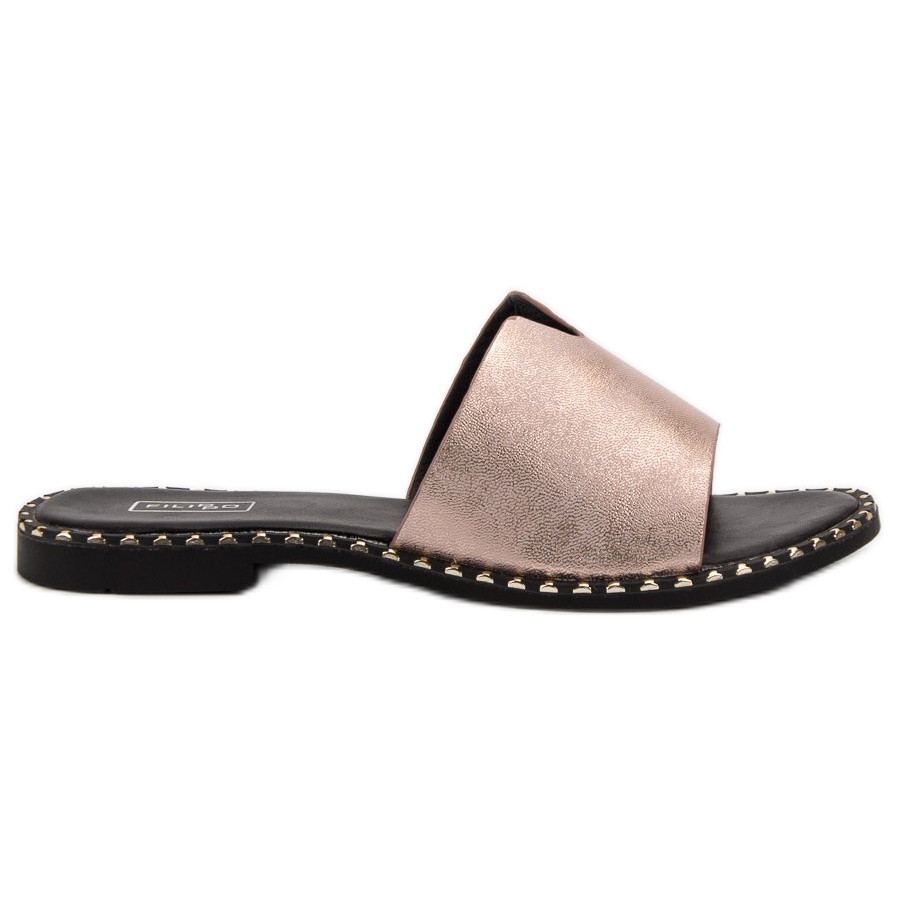 Die bequemen, glänzenden zehenstegsandalen von Filippo in Gelbgold sind die perfekte Wahl für Frauen, die Stil mit Komfort kombinieren möchten. Diese eleganten zehenstegsandalen aus ökologischem Leder begeistern durch ihre satinierte, glänzende Oberfläche. Der dekorative Ausschnitt auf der Vorderseite und die dekorativen Silberdüsen auf der Sohle verleihen ihnen einen einzigartigen Charakter und machen sie zu einer perfekten Ergänzung für jedes Sommer-Styling.