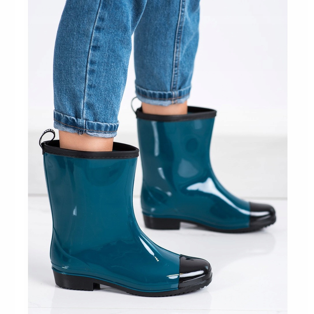 Die Gummistiefel haben eine originelle, schwarze, runde Spitze, die einen schönen Kontrast zur grünen Farbe bildet und dem Ganzen einen modernen Charakter verleiht. Der hohe Schaft, der bis zur Mitte der Wade reicht und mit einem eleganten schwarzen Rand versehen ist, schützt nicht nur die Beine vor Regen, sondern fügt sich auch perfekt in den lässigen Stil ein, perfekt für Herbst- und Wintertage.