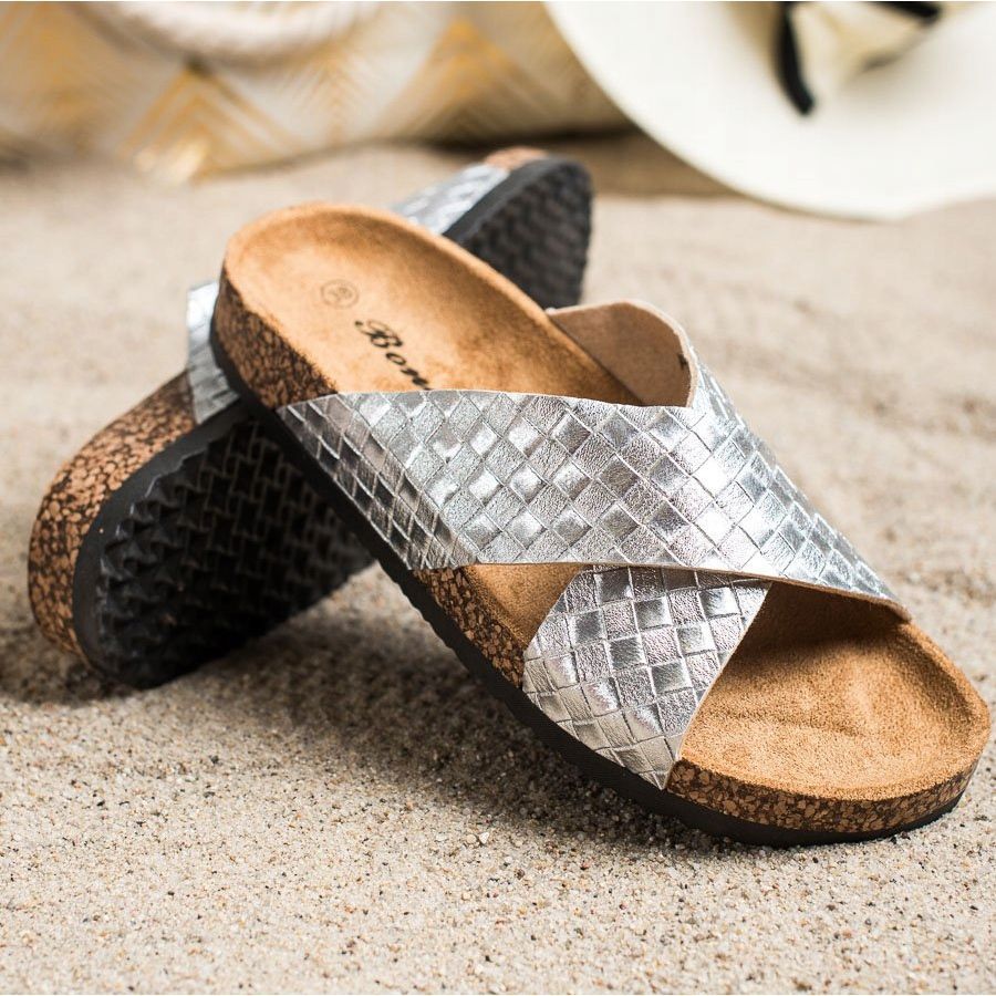 Bona Bona Bequeme Hausschuhe aus Öko-Leder silber-