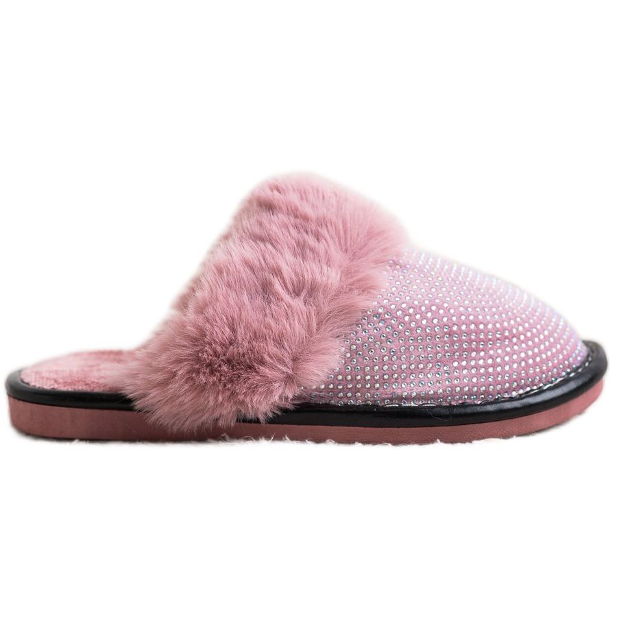 Ein interessanter Akzent sind zarte Zirkone, die ihnen einen einzigartigen Glanz verleihen. Das Fellfutter an der Innenseite der Hausschuhe sorgt für eine hervorragende Isolierung und macht sie zu einer idealen Wahl für Herbst und Winter. Die runde Spitze und die offene Ferse erhöhen den Tragekomfort und das Slip-on-Design ermöglicht ein schnelles und einfaches Anziehen der Hausschuhe.