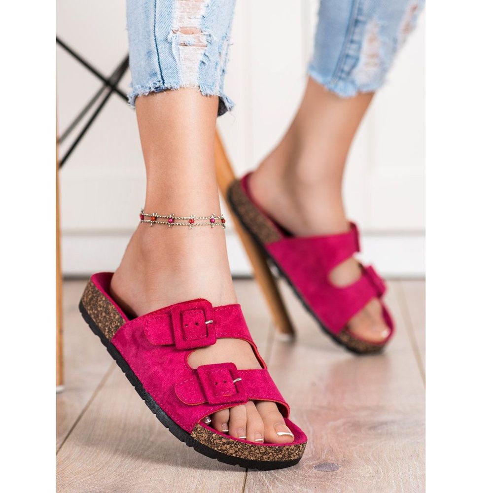 SHELOVET SHELOVET Bequeme Hausschuhe mit Schnallen rosa