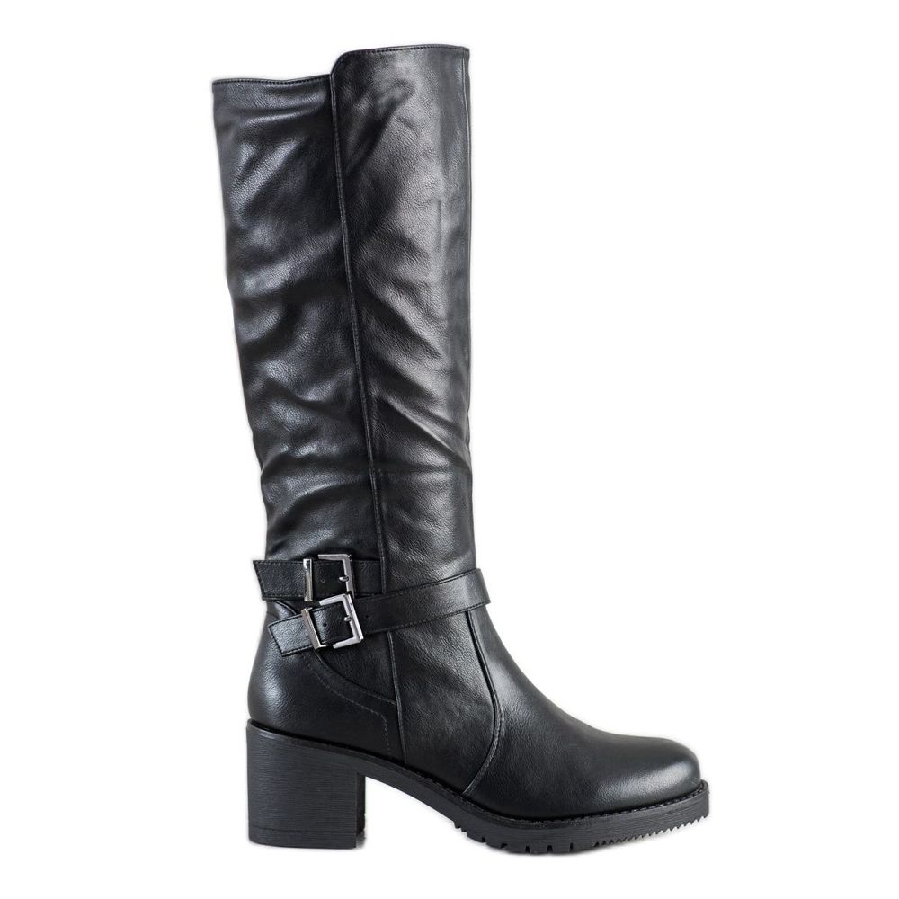 Flyfor Flyfor Bequeme hohe Stiefel mit Schnalle schwarz