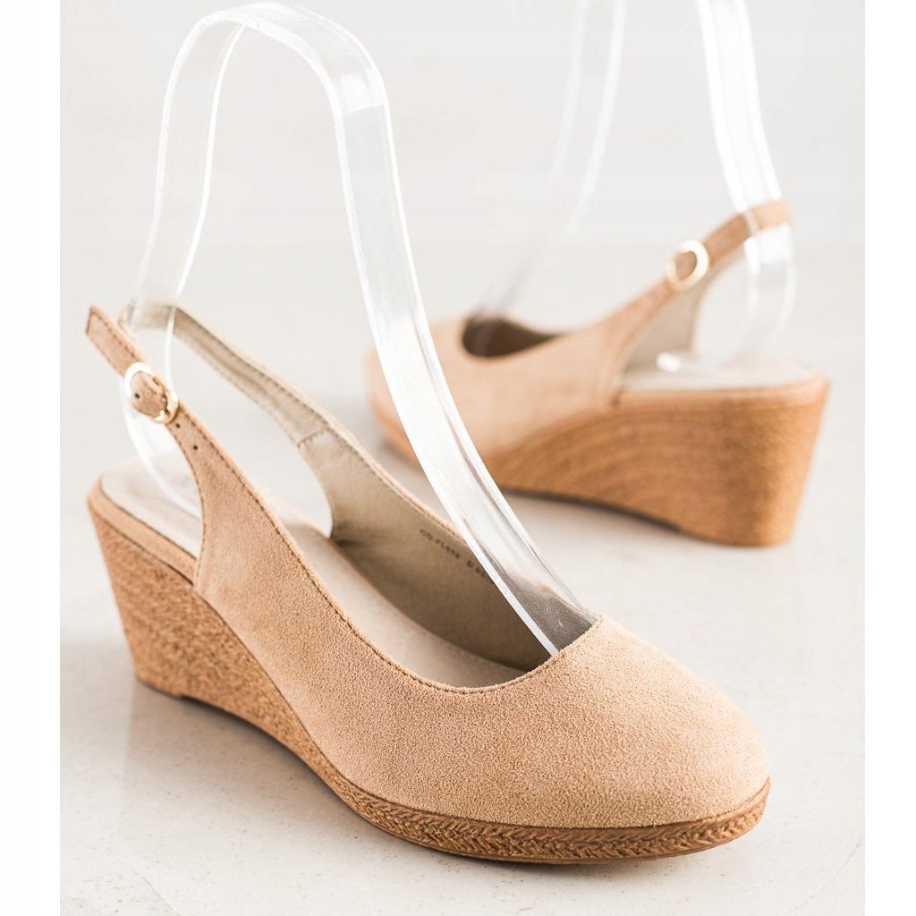 Die Pumps zeichnen sich durch einen offenen Absatz und eine runde Spitze aus, was ihnen Leichtigkeit und femininen Charme verleiht. Aus hochwertigem Wildlederimitat gefertigt, bieten sie einen stilvollen Look und lassen sich durch ihre braune Farbe problemlos mit verschiedenen Outfits kombinieren. Für den Innenteil der Schuhe wird eine Kombination aus Kunstleder und Naturleder verwendet, die für ein angenehmes Tragegefühl sorgt.