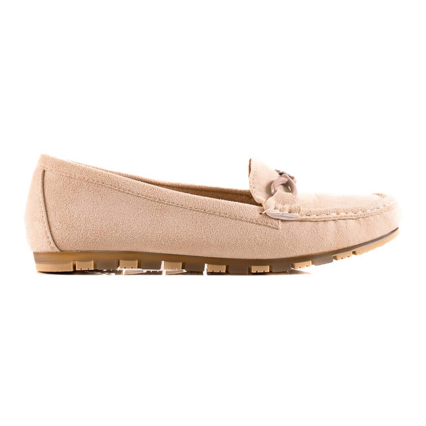 Der lässige Stil macht Mokassins perfekt für den täglichen Gebrauch, aber auch für verschiedene Arten von Feiern. Dank der neutralen, beigen Farbe lassen sie sich leicht mit verschiedenen Stilen kombinieren. Die Höhe der Sohlenplattform von 1,3 cm und das Fehlen eines Absatzes machen diese Schuhe zu einem idealen Begleiter für lange Stunden.
