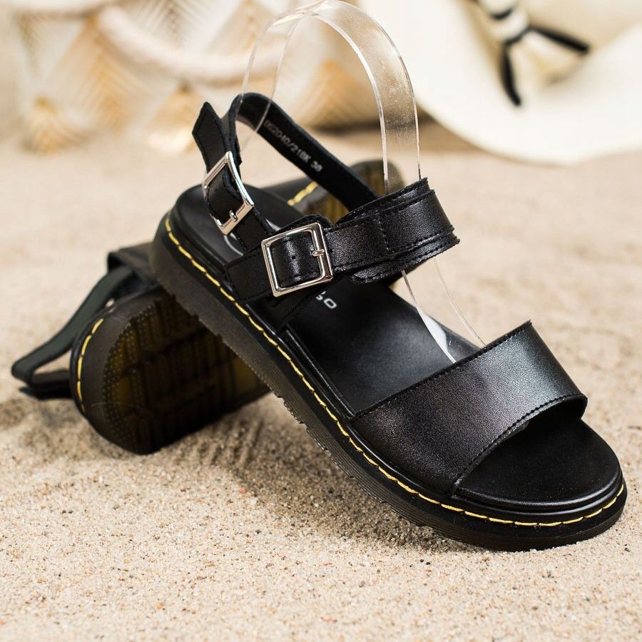 Die aus hochwertigem Naturleder gefertigten Sandalen bieten nicht nur eine elegante Optik, sondern auch Langlebigkeit. Die Innenseite der Sandalen ist mit ökologischem Lederimitat veredelt, was für ein angenehmes Tragegefühl sorgt. Die Kunststoffsohle mit Profil garantiert hervorragenden Halt auf verschiedenen Untergründen und der flache, 3 cm hohe Absatz sorgt für Komfort auch bei langen Spaziergängen.