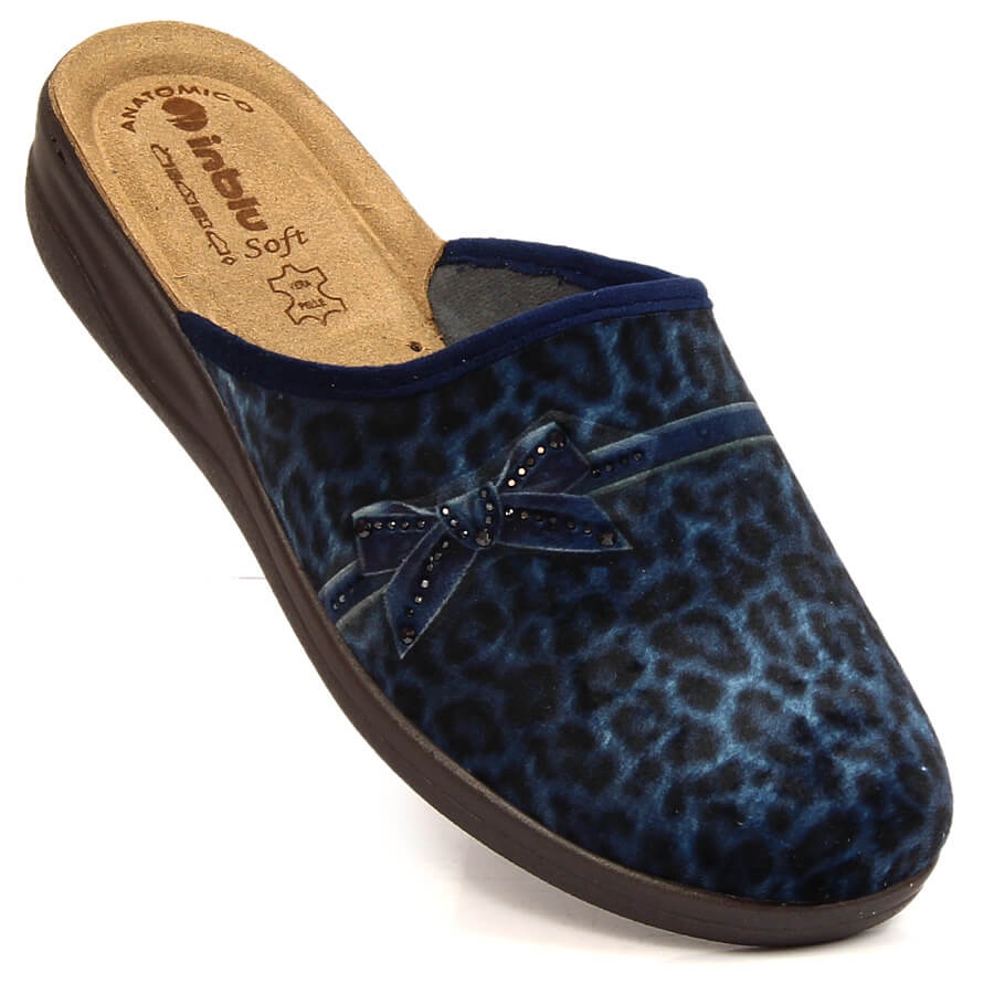Details: Bequeme marineblaue Inblu-Hausschuhe für Damen mit Leopardenmuster navy blau