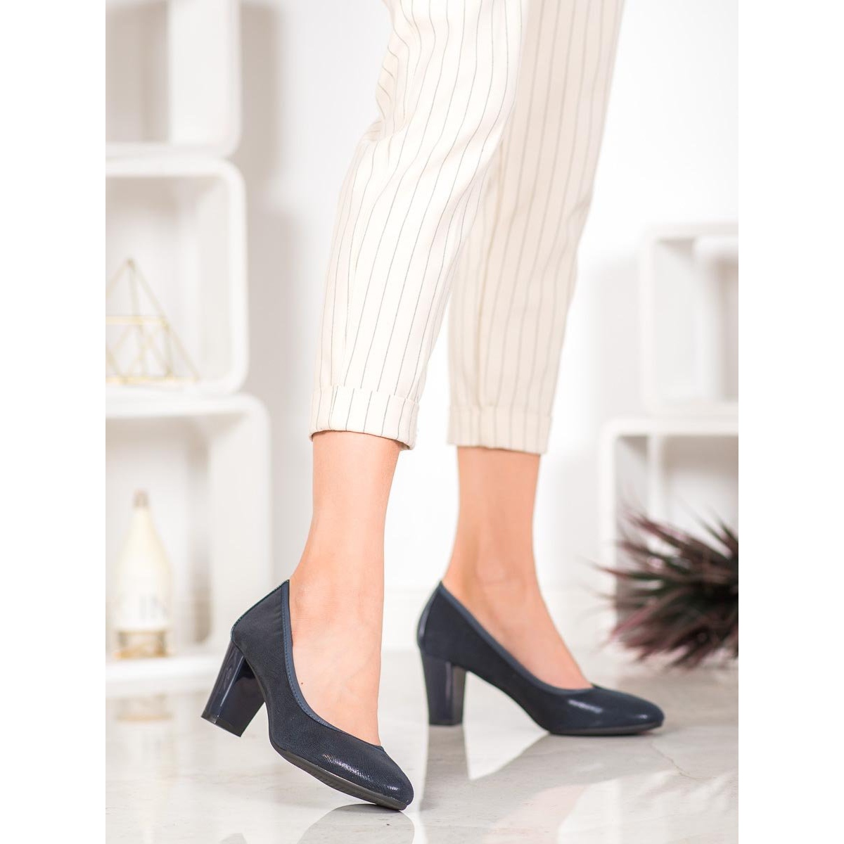 Die Pumpen bestehen aus hochwertigen Materialien. Der obere Teil des Schuhwerks besteht aus einer Kombination aus Kunstleder und Naturleder, was für Langlebigkeit und einen eleganten Look sorgt. Das Innere der Schuhe ist mit Naturleder ausgekleidet, was den ganzen Tag über Tragekomfort garantiert. Die runde Spitze sorgt für klassischen Charme und der 6,5 cm hohe Absatz macht das Gehen in diesen Pumps zu einem echten Vergnügen.